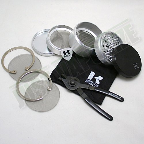 KANNASTOR 5 Piece Herbal, These KANNASTOR grinder boast a replacement screen. After many uses, most pollen screens get clogged up. Screens can be cleaned, but they will never be as clean as a brand new one. These come with (1) replacement screen in the box and additional screens are available for a nominal price. To remove the screen, use the included pliers and remove the tension ring below the screen. Screen replacement is simple and easy. In additional the ability to change the pollen screen, these grinder boast a strong aluminum body with diamond cut teeth. The air tight magnetic top keeps herbal blends from drying out. KANNASTOR is generous with the drop through holes which prevents over grinding. Another big feature of these grinder is the over sized herbal storage area. Once the herbal blend is ground to the correct size and falls through the drop holes. the storage area is big enough to hold extra for later use. These new innovations in the grinder market make the KANNASTOR stand out among others.